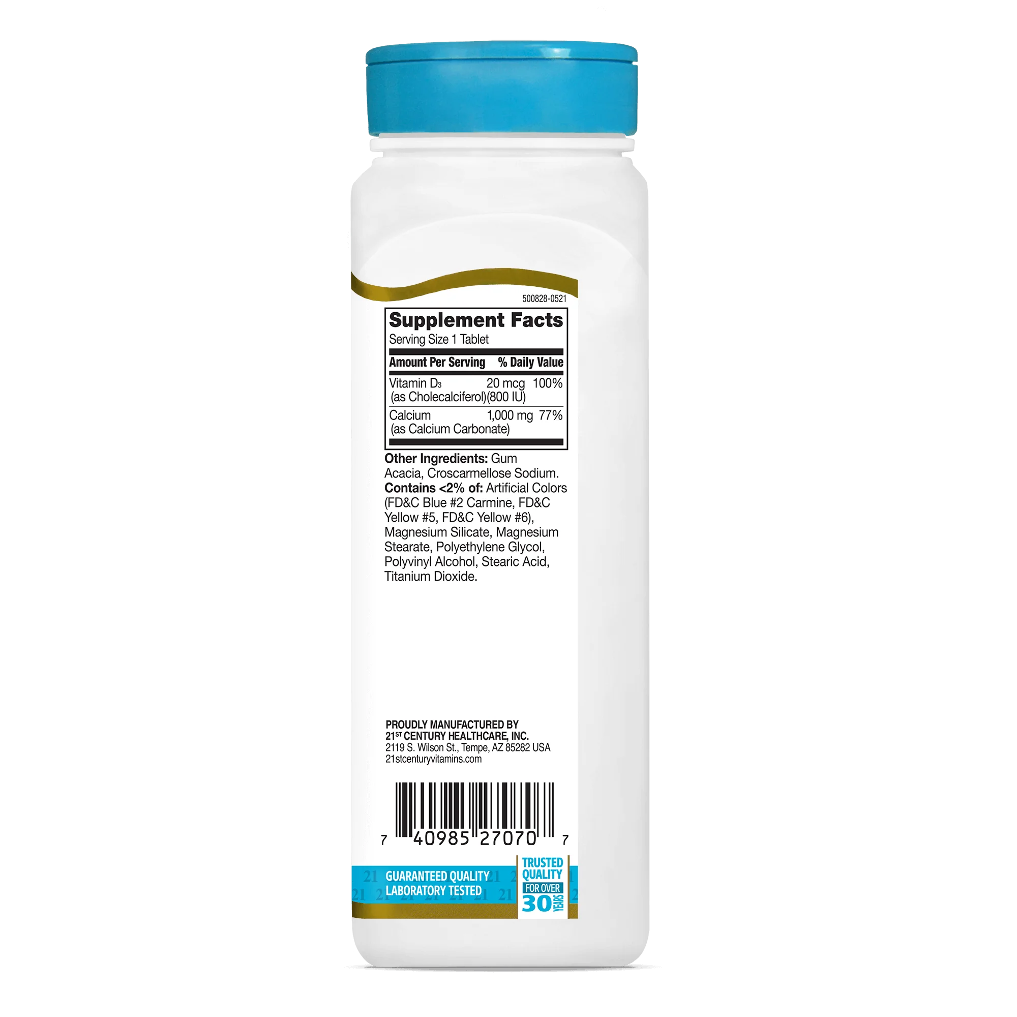 21st Century Calcium 1000 mg Plus D3 is a daily calcium supplement designed to support foundational wellness with a practical, easy-to-take formula. Each serving provides 1,000 mg of calcium to support bone health, plus 20 mcg (800 IU) of vitamin D3 to assist with calcium absorption.* This pairing makes it a smart choice for adults who want targeted bone support as part of their daily supplement routine.*Ā