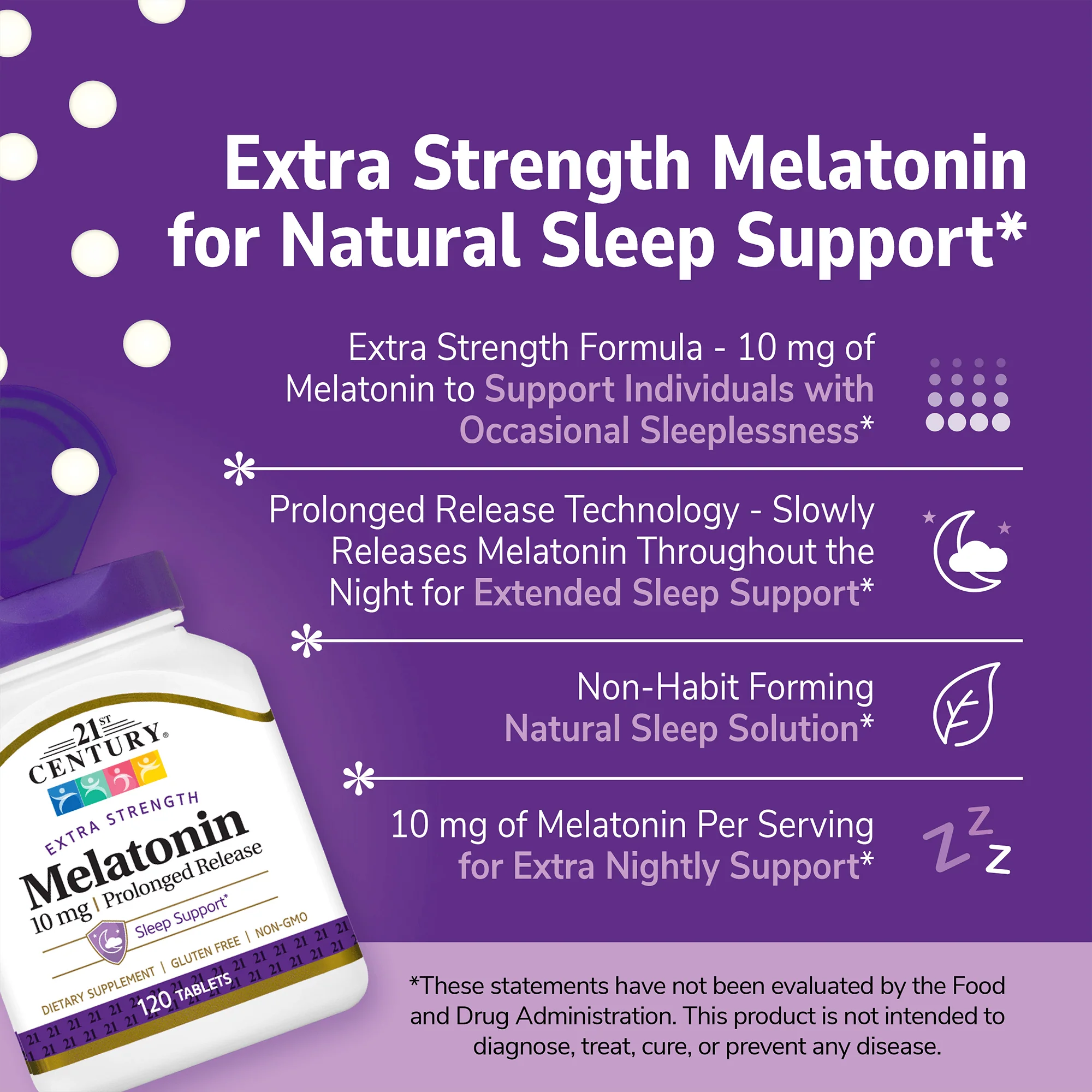 Melatonin is a natural hormone that regulates our circadian rhythm, helping to maintain our sleep/wake cycles. It plays a crucial role in promoting restful sleep and overall well-being.* 21st Century Melatonin Extra Strength Quick Dissolve can support individuals with occasional sleeplessness to fall asleep faster and enjoy more restful sleep.*