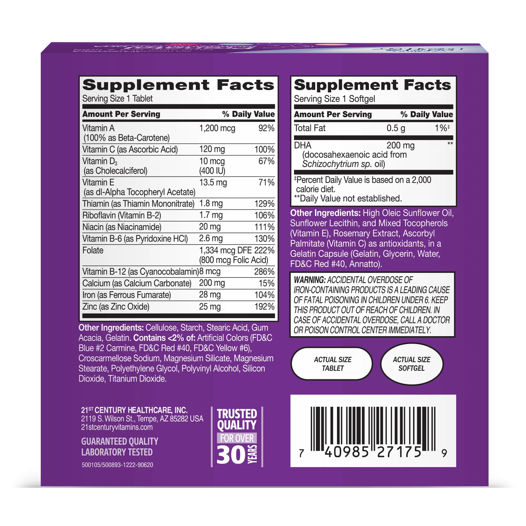21ST Century® PreNatal Multivitamin tablets provide vitamin and mineral supplementation throughout pregnancy and during postnatal period. Includes 100% of the key nutrients for both lactating and non lactating mothers, like folic acid and iron.*