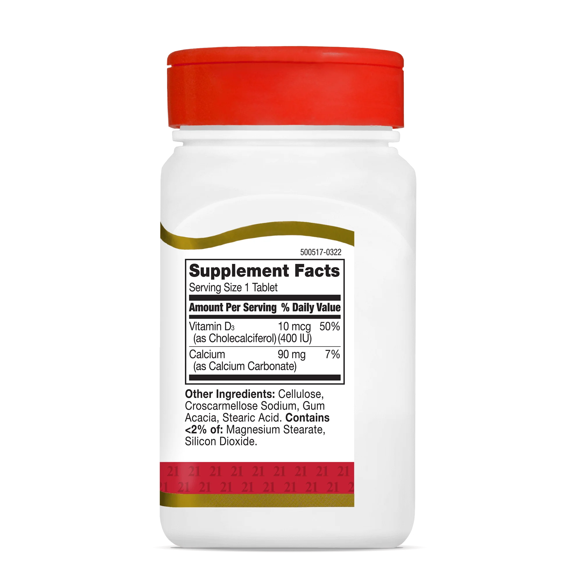 21st Century Vitamin D3 10 mcg tablets offer a convenient way to support your intake of this essential vitamin, which is naturally produced by your body when exposed to sunlight and found in limited food sources such as fatty fish and egg yolks.*