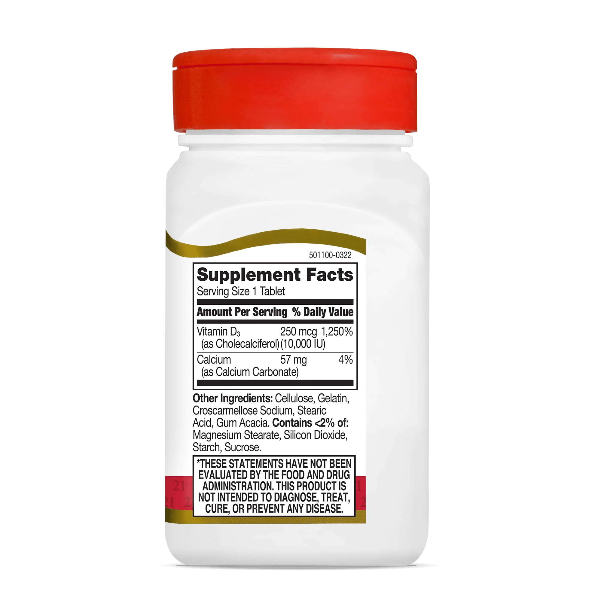 21st Century Vitamin D3 250 mcg tablets offer a convenient way to support your intake of this essential vitamin, which is naturally produced by your body when exposed to sunlight and found in limited food sources such as fatty fish and egg yolks.*